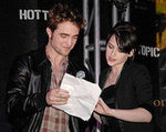Rob e Kristen ajudaram um ao outro enquanto falavam numa loja da Hot Topic durante a turnê de divulgação de Lua Nova em 2009.