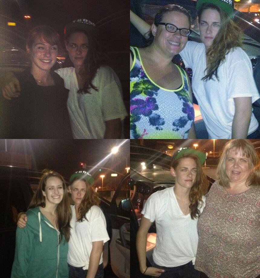 Poderíamos dizer que as duas noites ela estava cansada, mas era o final das filmagens, então ela estava mais do que disposta. Mas ela não queria ficar muito naquela noite. Nós respeitamos, e fizemos isso muito rápido. Havia outro par de pessoas, então sabiam que ia passar alguns minutos com a gente. Dei-lhe um abraço e outra fã deu a sua jóia e estávamos em nosso caminho. Kristen é uma super profissional, estamos muito orgulhosas dela e de sua disposição em passar mais tempo com os fãs.